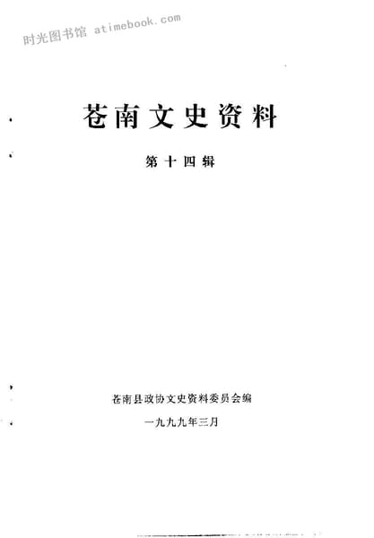 | 网盘路径:/时光图书馆珍藏系列/书籍文件/老图书/《苍南文史资料_第14辑》电子版合集.db | ||