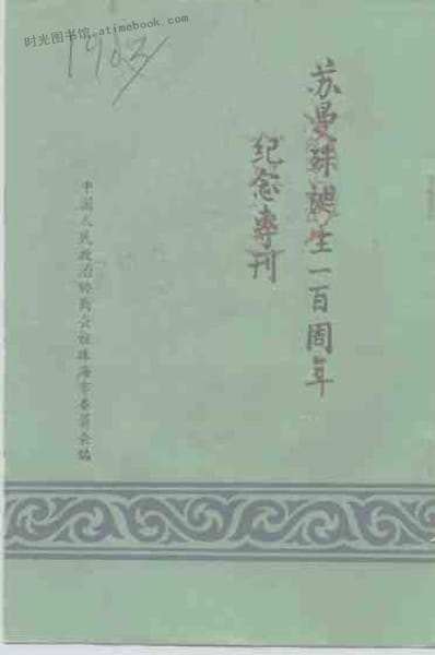 | 网盘路径:/时光图书馆珍藏系列/书籍文件/老图书/《苏曼殊诞生一百周年纪念专刊》电子版合集.db | ||