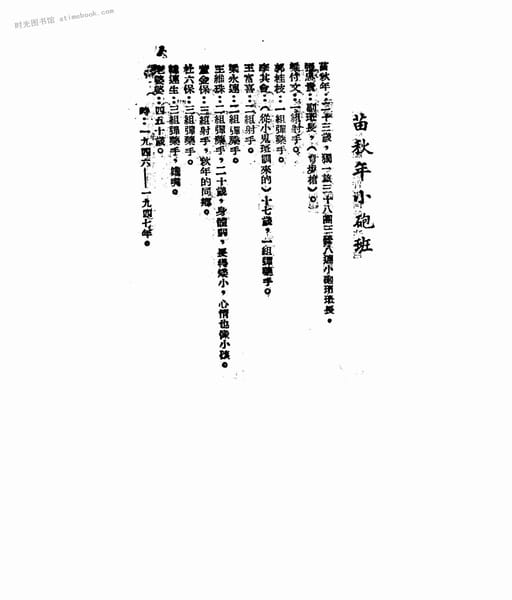 | 网盘路径:/时光图书馆珍藏系列/书籍文件/老图书/《苗秋年小炮班》电子版合集.db | ||