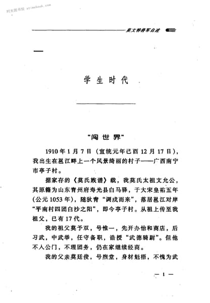 网盘路径:/时光图书馆珍藏系列/书籍文件/老图书/《莫文骅将军自述》电子版合集.db