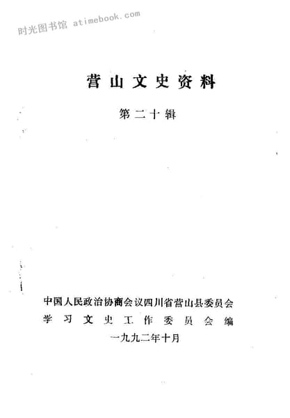 | 网盘路径:/时光图书馆珍藏系列/书籍文件/老图书/《营山文史资料_第20辑》电子版合集.db | ||