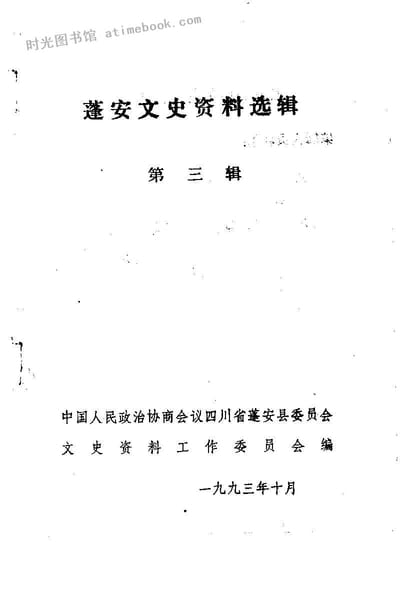 | 网盘路径:/时光图书馆珍藏系列/书籍文件/老图书/《蓬安文史资料选辑_第3辑》电子版合集.db | ||