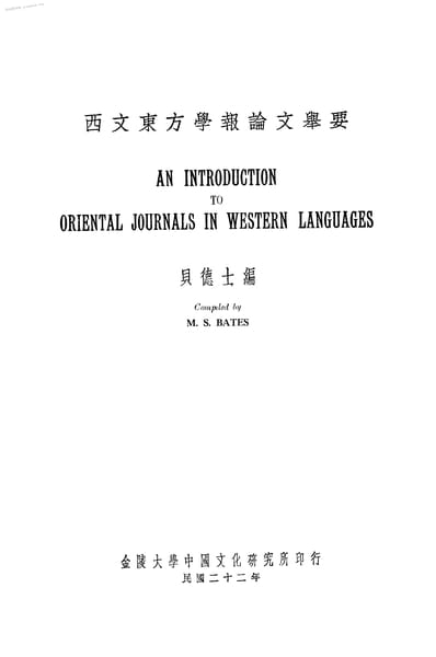 | 网盘路径:/时光图书馆珍藏系列/书籍文件/老图书/《西文东方学报论文举要》电子版合集.db | ||