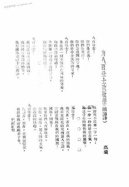 | 关键词:朗诵诗,记八百孤军, | ||