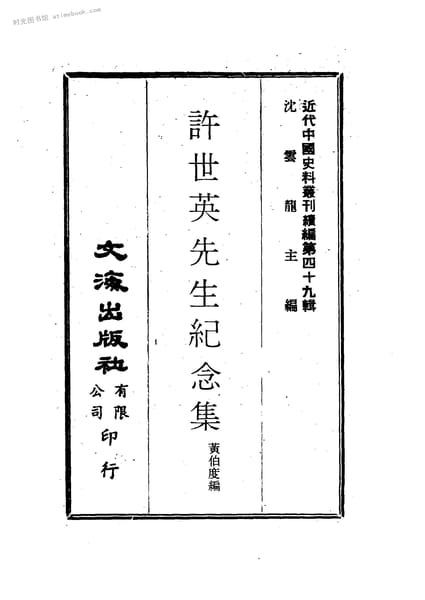 | 网盘路径:/时光图书馆珍藏系列/书籍文件/老图书/《许世英先生纪念集》电子版合集.db | ||