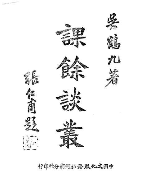 | 网盘路径:/时光图书馆珍藏系列/书籍文件/老图书/《课余谈从》电子版合集.db | ||