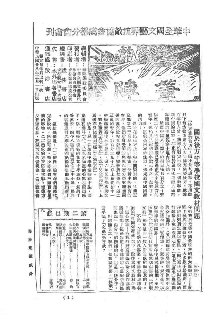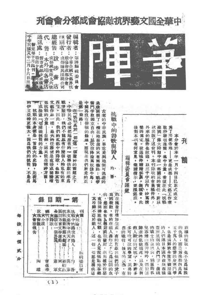 | 网盘路径:/时光图书馆珍藏系列/书籍文件/老杂志、老期刊/民国期刊/四川/《笔阵》(成都)1939-1943年合集.db | ||