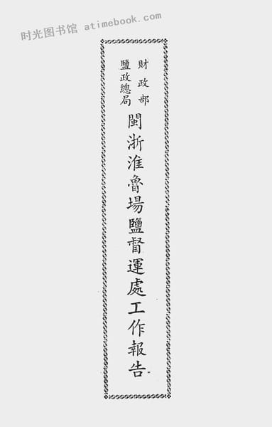 | 网盘路径:/时光图书馆珍藏系列/书籍文件/老图书/《财政部盐政总局闽浙淮鲁场盐督运处工作报告》电子版合集.db | ||