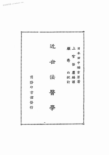 | 网盘路径:/时光图书馆珍藏系列/书籍文件/老图书/《近世法医学》电子版合集.db | ||