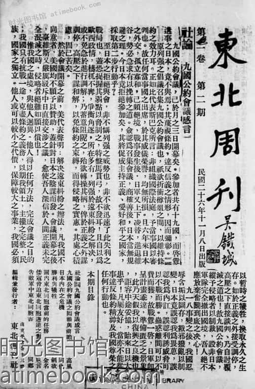 网盘路径:/时光图书馆珍藏系列/书籍文件/老杂志、老期刊/民国期刊/南京/《东北周刊》(南京)1937-1938年合集.db