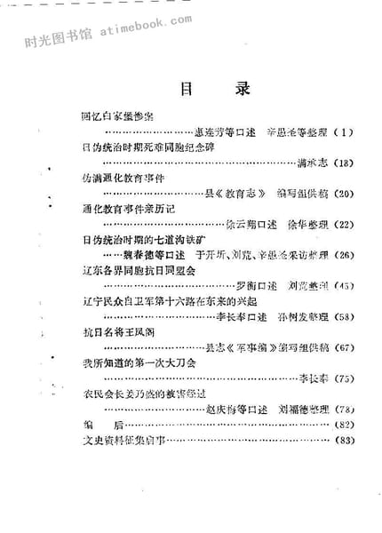 | 网盘路径:/时光图书馆珍藏系列/书籍文件/老图书/《通化县文史资料_第1辑》电子版合集.db | ||