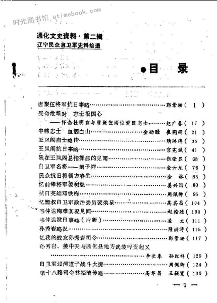 | 网盘路径:/时光图书馆珍藏系列/书籍文件/老图书/《通化文史资料_第2辑_辽宁民众自卫军史料拾遗》电子版合集.db | ||