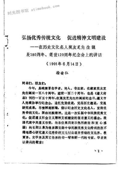 2-弘扬优秀传统文化促进精神文明建设–在历史文化名人莫友芝先生诞辰180周年、逝世120周年纪念会上的讲话徐安仁