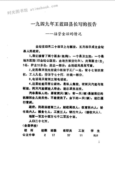 2-解放后金坛第一任县长王蓝田向苏南行署的报告