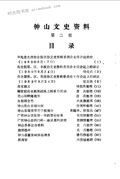 | 网盘路径:/时光图书馆珍藏系列/书籍文件/老图书/《钟山文史资料_第2辑》电子版合集.db | ||
