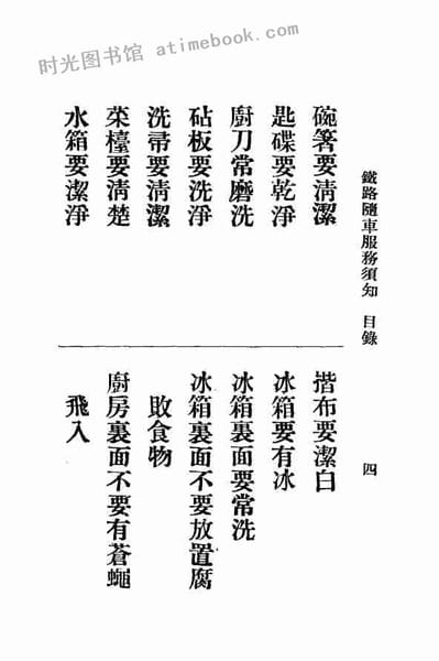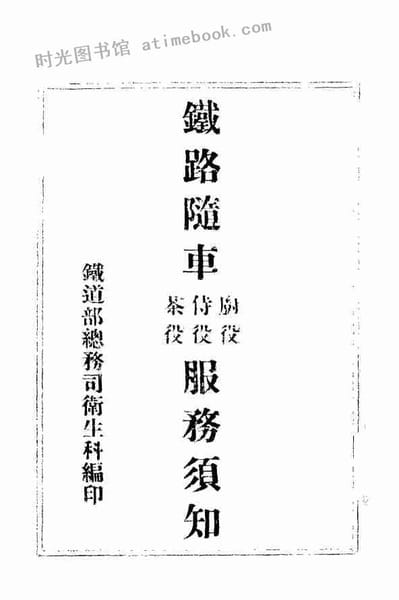 | 网盘路径:/时光图书馆珍藏系列/书籍文件/老图书/《铁路随车厨役、侍役、茶役服务须知》电子版合集.db | ||