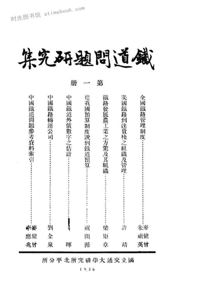 | 网盘路径:/时光图书馆珍藏系列/书籍文件/老图书/《铁道问题研究集_第1册(_美国铁路到达货栈之组织及管理)》电子版合集.db | ||