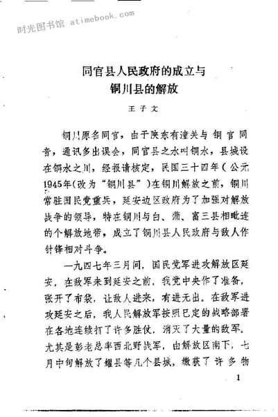 | 网盘路径:/时光图书馆珍藏系列/书籍文件/老图书/《铜川文史资料选辑_第1辑》电子版合集.db | ||