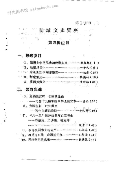 | 网盘路径:/时光图书馆珍藏系列/书籍文件/老图书/《防城文史资料_第4辑》电子版合集.db | ||