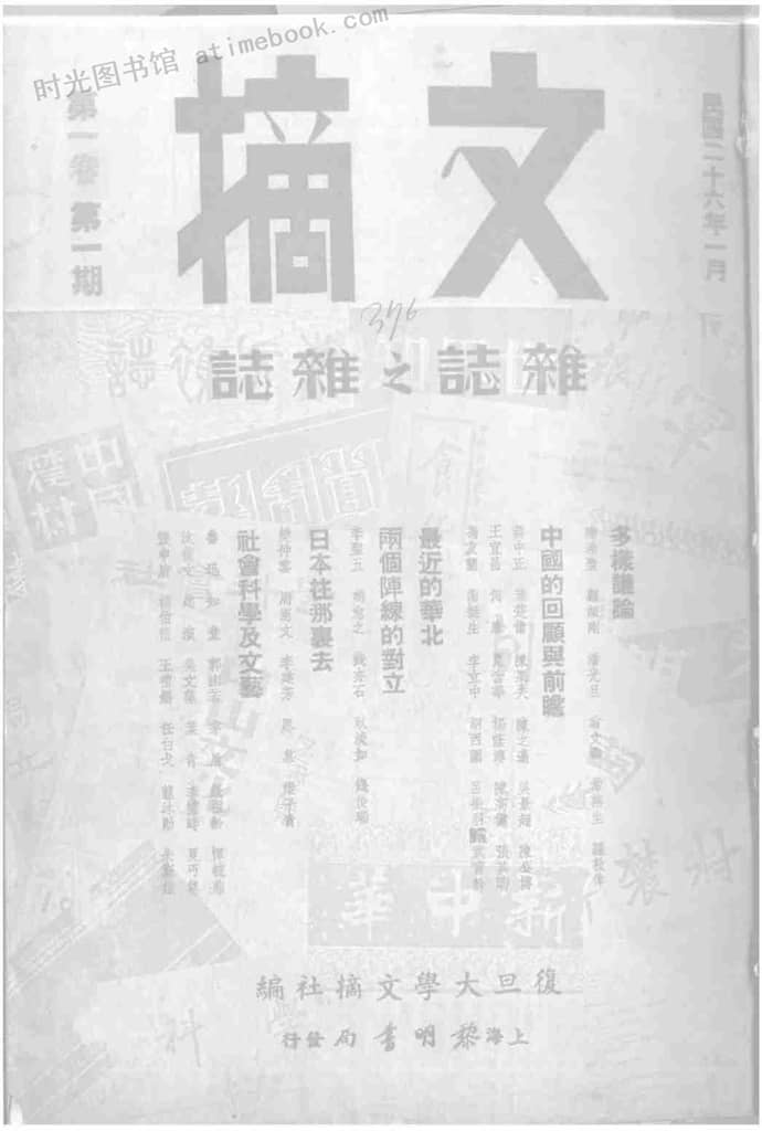 | 网盘路径:/时光图书馆珍藏系列/书籍文件/老杂志、老期刊/民国期刊/上海/《文摘》(上海)1937-1948年合集.db | ||