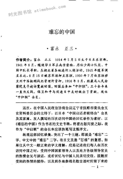 | 网盘路径:/时光图书馆珍藏系列/书籍文件/老图书/《难忘的中国—日本中国归还者联络会历次访华见闻实录》电子版合集.db | ||