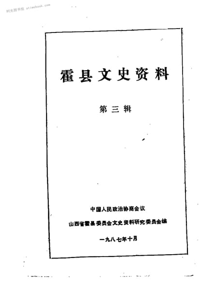 | 网盘路径:/时光图书馆珍藏系列/书籍文件/老图书/《霍县文史资料_第3辑》电子版合集.db | ||