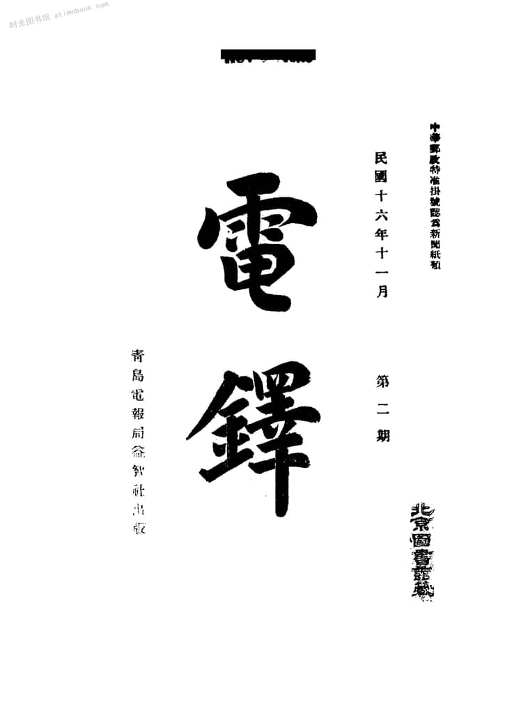 网盘路径:/时光图书馆珍藏系列/书籍文件/老杂志、老期刊/民国期刊/山东/《电铎》(山东青岛)1917-1920年合集.db
