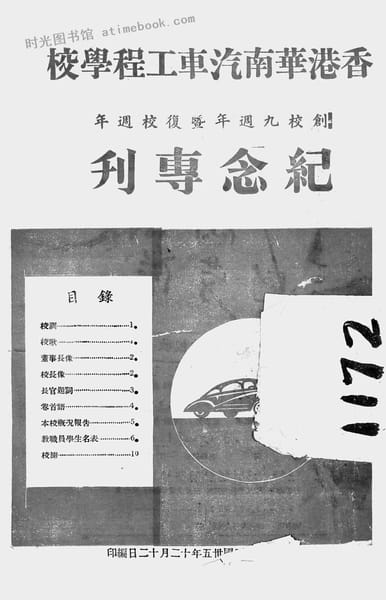 | 网盘路径:/时光图书馆珍藏系列/书籍文件/老图书/《香港华南汽车工程学校创校九周年暨复校周年纪念专刊》电子版合集.db | ||