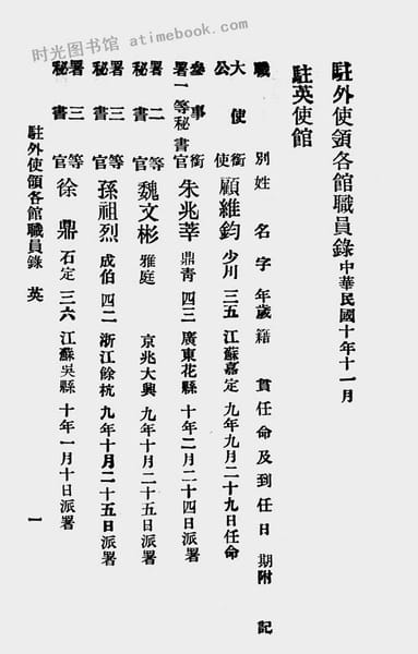 | 关键词:交部,大使馆,外交人员,人员录,顾维钧, | ||