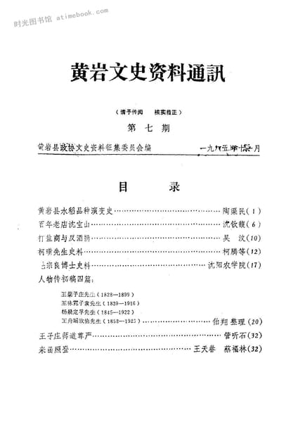 | 网盘路径:/时光图书馆珍藏系列/书籍文件/老图书/《黄岩文史资料通讯_第7期》电子版合集.db | ||