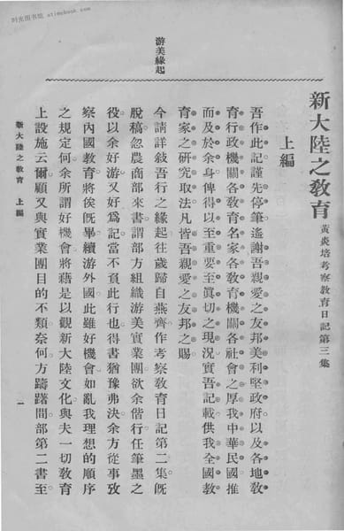 | 网盘路径:/时光图书馆珍藏系列/书籍文件/老图书/《黄炎培考察教育日记_第3集_新大陆之教育_上编》电子版合集.db | ||