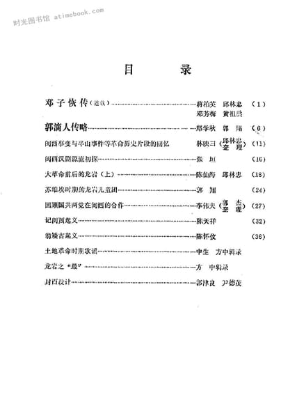 | 网盘路径:/时光图书馆珍藏系列/书籍文件/老图书/《龙岩文史资料_初稿_第1期》电子版合集.db | ||