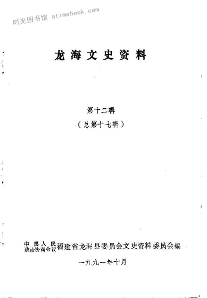 | 网盘路径:/时光图书馆珍藏系列/书籍文件/老图书/《龙海文史资料_第12辑_总第17辑》电子版合集.db | ||