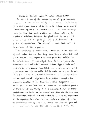 网盘路径:/时光图书馆珍藏系列/书籍文件/老图书/《STUDY_ON_THE_LIFE_CYCLE_OF_VETCH_NODULE_BACTERIA》电子版合集.db