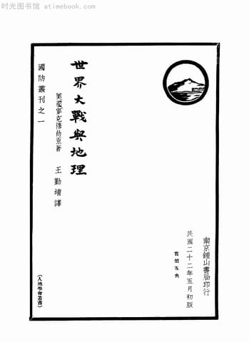 | 网盘路径:/时光图书馆珍藏系列/书籍文件/老图书/《世界大战与地理》电子版合集.db | ||
