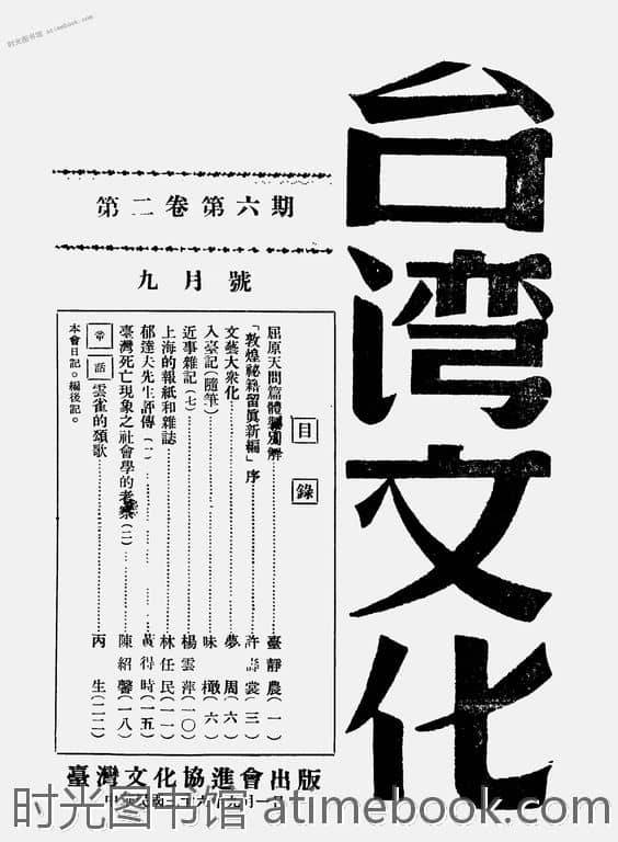 网盘路径:/时光图书馆珍藏系列/书籍文件/老杂志、老期刊/民国期刊/台湾/《台湾文化》(台北)1947-1948年合集.db