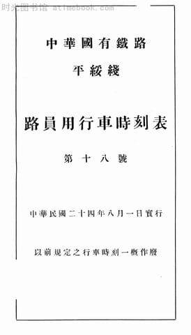 老图书–《中华国有铁路平绥线路员用行车时刻表第十八号》电子版合集