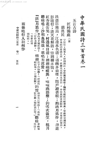 | 网盘路径:/时光图书馆珍藏系列/书籍文件/老图书/《中华民国诗三百首》电子版合集.db | ||