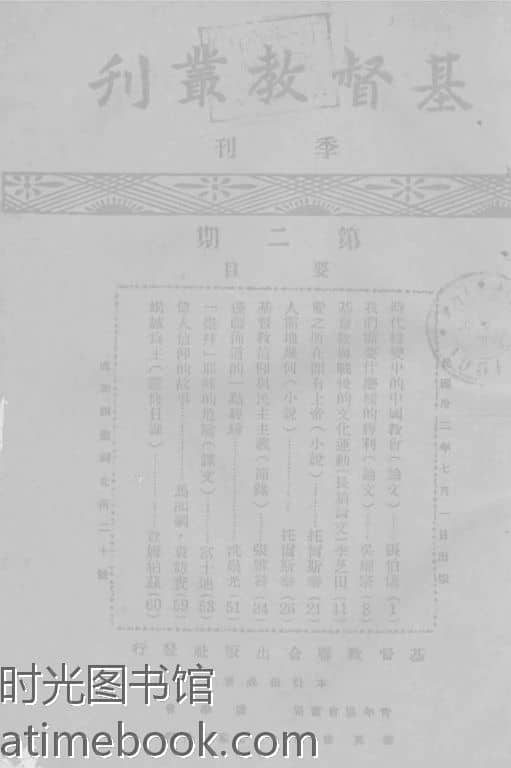 网盘路径:/时光图书馆珍藏系列/书籍文件/老杂志、老期刊/民国期刊/上海/《基督教丛刊》(上海)1943-1951年合集.db