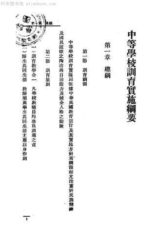 | 网盘路径:/时光图书馆珍藏系列/书籍文件/老图书/《中等学校训育实施纲要》电子版合集.db | ||