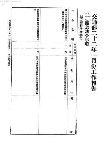 | 网盘路径:/时光图书馆珍藏系列/书籍文件/老图书/《交通部二十二年一月份工作报告》电子版合集.db | ||