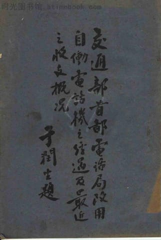 网盘路径:/时光图书馆珍藏系列/书籍文件/老图书/《交通部首都电话局改用自动电话机之经过及最近收支概况》电子版合集.db