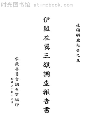 | 网盘路径:/时光图书馆珍藏系列/书籍文件/老图书/《伊盟左翼三旗调查报告书》电子版合集.db | ||