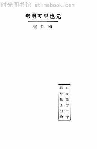 | 网盘路径:/时光图书馆珍藏系列/书籍文件/老图书/《元也里可温考》电子版合集.db | ||