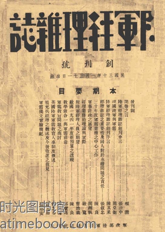 | 网盘路径:/时光图书馆珍藏系列/书籍文件/老杂志、老期刊/《陆军经理杂志》1941-1942年合集.db | ||