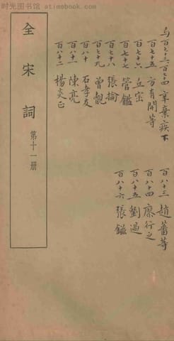 | 网盘路径:/时光图书馆珍藏系列/书籍文件/老图书/《全宋词第11册》电子版合集.db | ||
