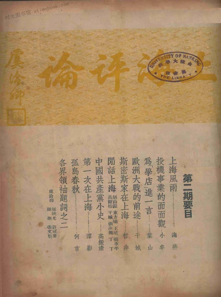 | 网盘路径:/时光图书馆珍藏系列/书籍文件/老杂志、老期刊/民国期刊/上海/《上海评论》(上海)1939-1940年合集.db | ||