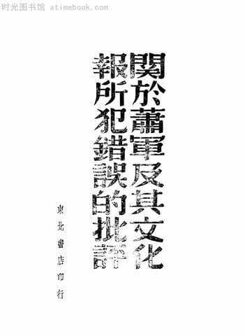 | 网盘路径:/时光图书馆珍藏系列/书籍文件/老图书/《关于萧军及其文化报所犯错误的批评》电子版合集.db | ||