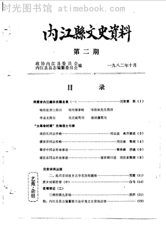 | 网盘路径:/时光图书馆珍藏系列/书籍文件/老图书/《内江县文史资料_第2期》电子版合集.db | ||