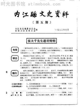 | 网盘路径:/时光图书馆珍藏系列/书籍文件/老图书/《内江县文史资料_第5期(张大千先生逝世特辑)》电子版合集.db | ||